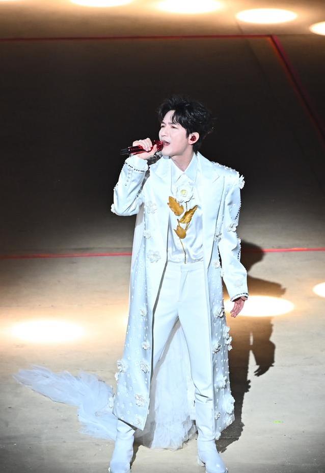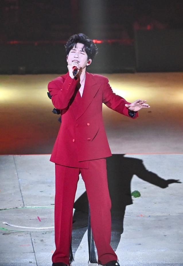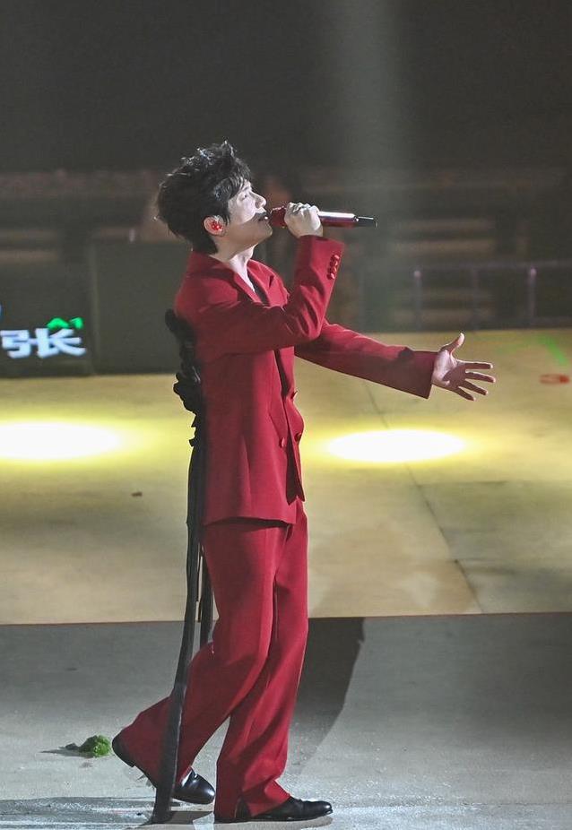 惊喜来得突然,吉克隽逸突然现身舞台,和陈楚生一起带来《青春的颜色》。这首歌融进了彝族唱调,带着山野间独有的空灵和力量。吉克隽逸一袭绿裙,陈楚生穿鲜红西装,两人站在一起像两种截然不同的味道碰撞,却又奇妙地融为一体。唱完后,吉克隽逸笑着说自己是大凉山香菜,陈楚生是海南辣椒,香菜辣椒组合无敌。这句调侃逗得大家笑出声,也让现场多了一份轻松的温暖。这样的合作不光是声音的交汇,更是不同地域音乐文化的自然对话,让人感受到音乐本该有的包容与生机。